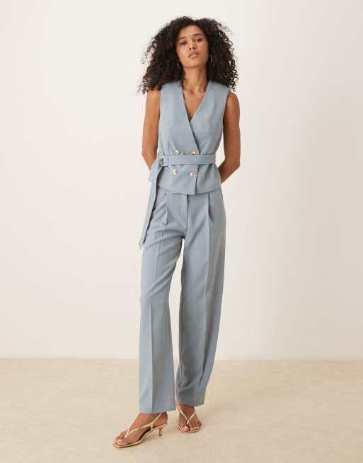 ASOS DESIGN - Coordinato blu con pantaloni dritti e gilet con cintura