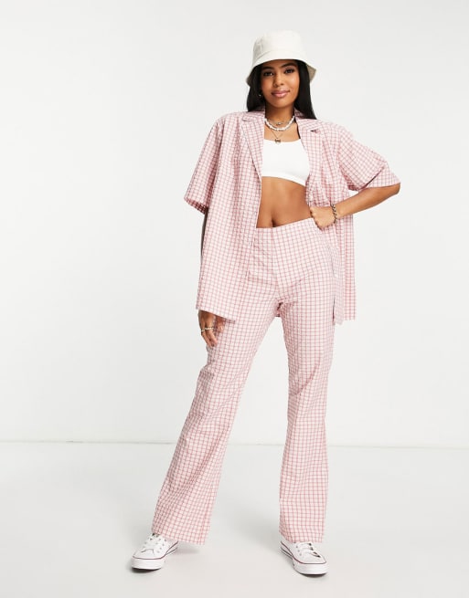 ASOS DESIGN - Coordinato casual con pantaloni a zampa e camicia stile bowling rosa a quadri