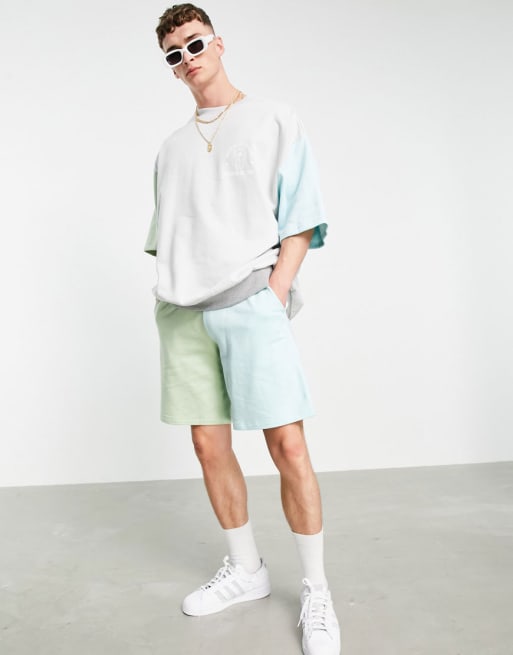 ASOS DESIGN - Coordinato con felpa e pantaloncini slim color block pastello