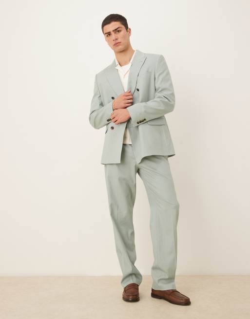 ASOS DESIGN - Coordinato con giacca da abito doppiopetto classica in misto lino verde