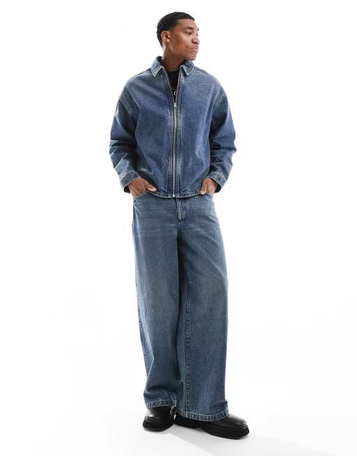 ASOS DESIGN - Coordinato con jeans super ampi e giacca lavaggio blu medio