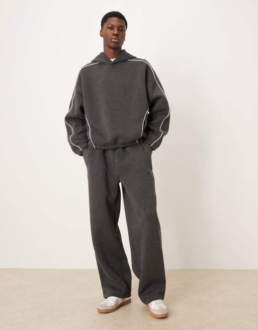 ASOS DESIGN - Coordinato con joggers e felpa con cappuccio grigio scuro con profili laterali