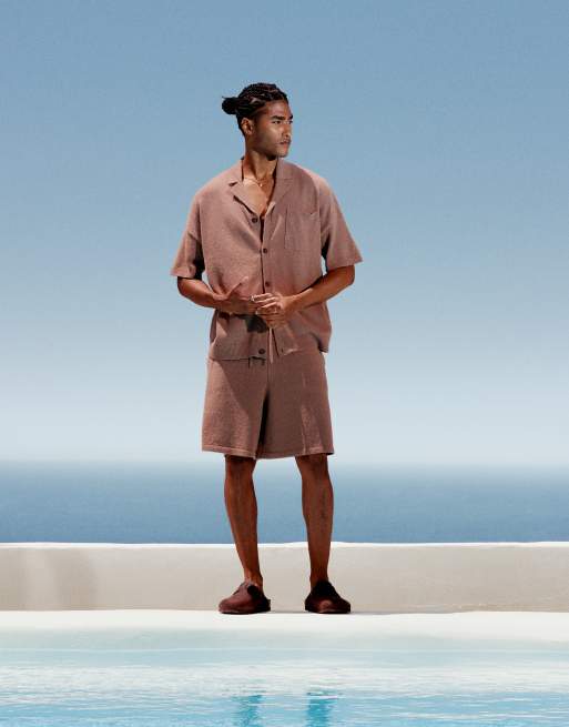 ASOS DESIGN - Coordinato con polo oversize e pantaloncini marrone testurizzato