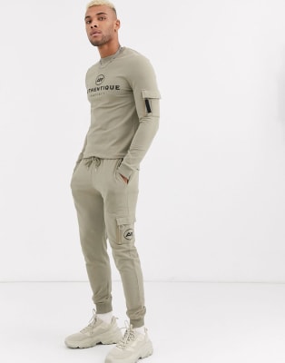 ASOS DESIGN - Coordinato con tasca stile MA1 e tasche cargo kaki