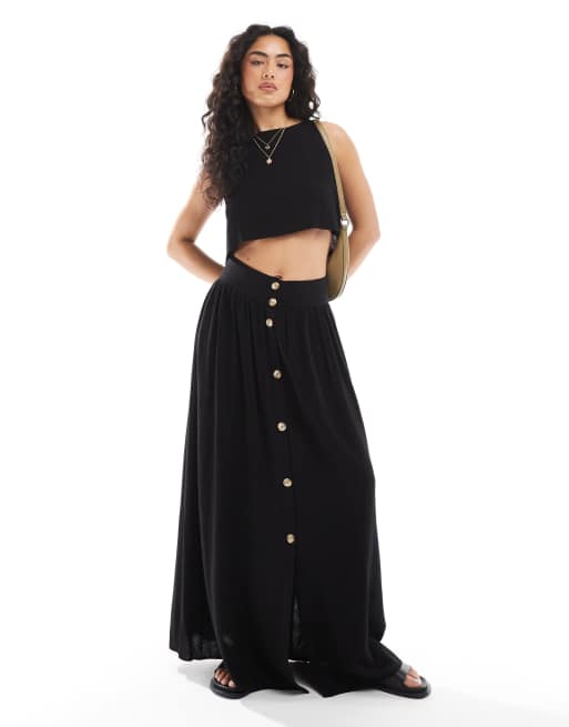 ASOS DESIGN - Coordinato con top senza maniche nero in misto lino