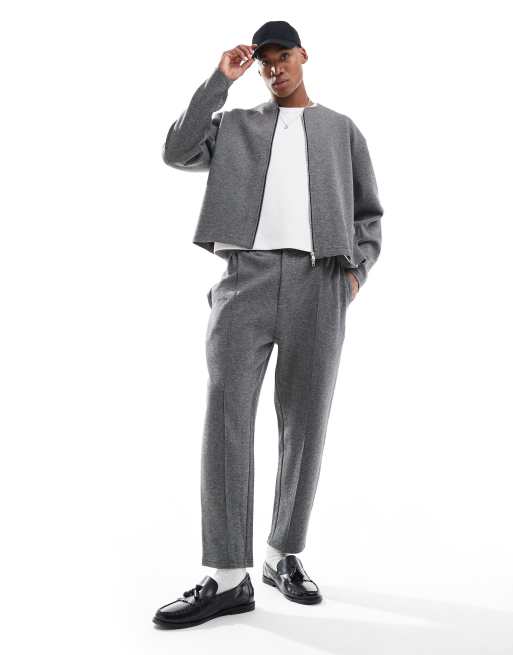 ASOS DESIGN - Coordinato grigio testurizzato con giacca con zip e joggers