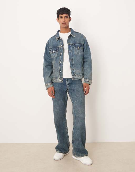 ASOS DESIGN - Coordinato lavaggio blu medio con tinta gialla