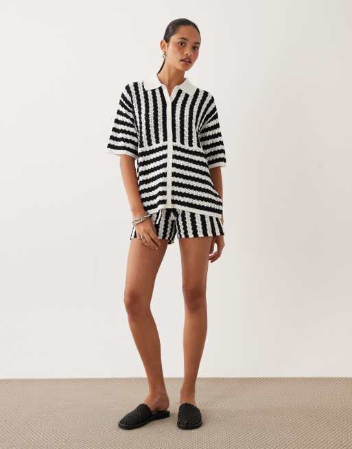 ASOS DESIGN - Coordinato monocromatico fiammato a righe con pantaloncini e camicia