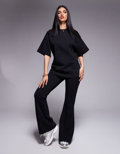 ASOS DESIGN - Coordinato nero con T-shirt squadrata oversize e pantaloni in interlock