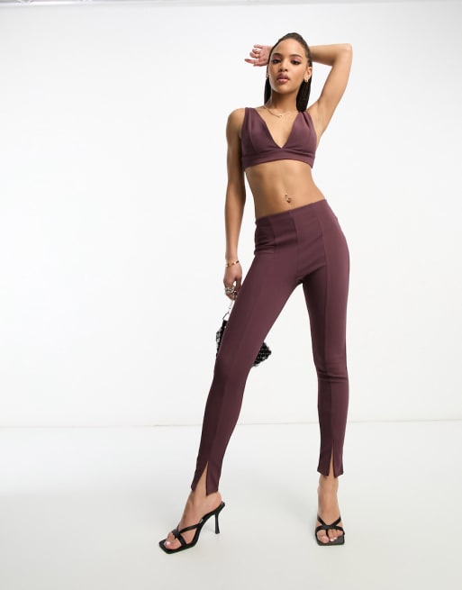 ASOS DESIGN - Coordinato prugna con canotta corta con scollo a V e leggings skinny