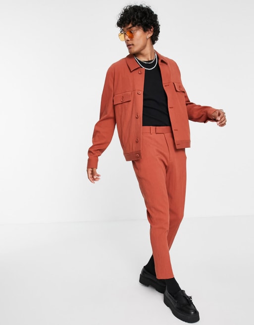 ASOS DESIGN - Coordinato skinny in tessuto stropicciato ruggine