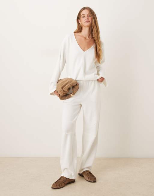 ASOS DESIGN - Coordinato soffice con joggers bianco avorio invernale