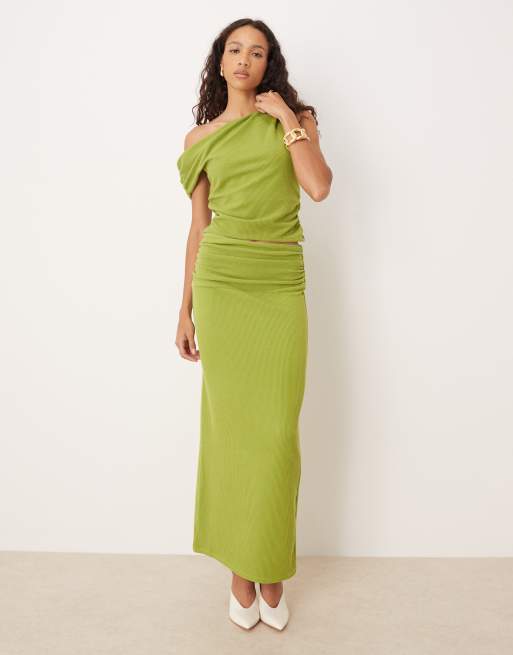 ASOS DESIGN - Coordinato verde a coste testurizzato con gonna lunga e top asimmetrico