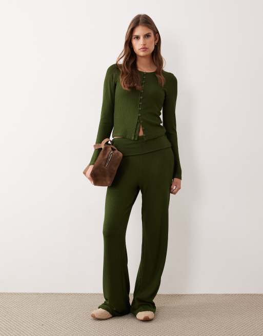 ASOS DESIGN - Coordinato verde oliva scuro con cardigan e pantaloni