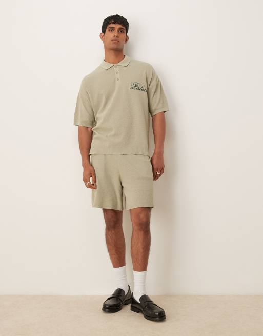 ASOS DESIGN - Coordinato verde pallido composto da polo vestibilità comoda con ricamo “Palermo” e pantaloncini