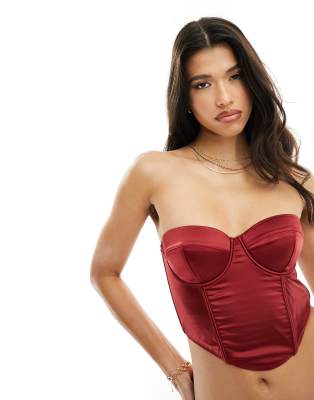 ASOS DESIGN - Corsetto in raso rosso imbottito con ferretto e spalline rimovibili