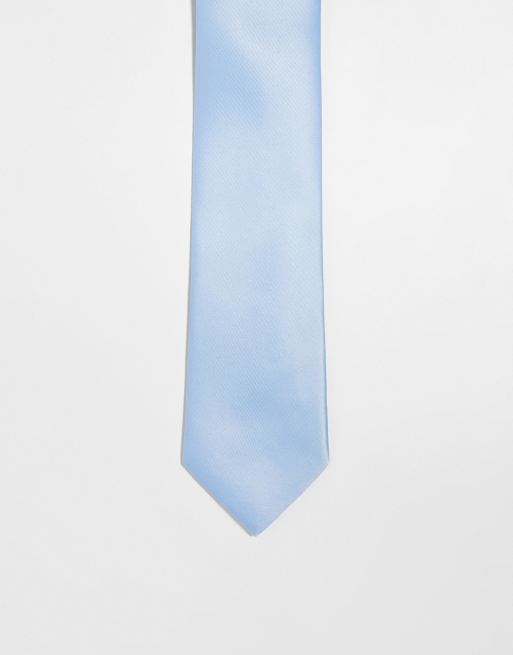 ASOS DESIGN - Cravatta in raso blu pastello tinta unita