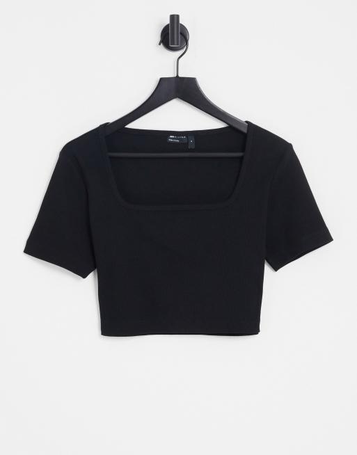 ASOS DESIGN - Crop top attillato nero a coste con scollo quadrato