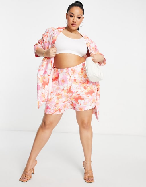 ASOS DESIGN Curve - Abito dad in lino con stampa a fiori astratta