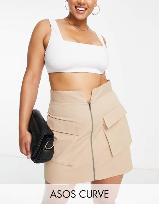 ASOS DESIGN Curve - Minigonna multitasche color pietra con chiusura con zip