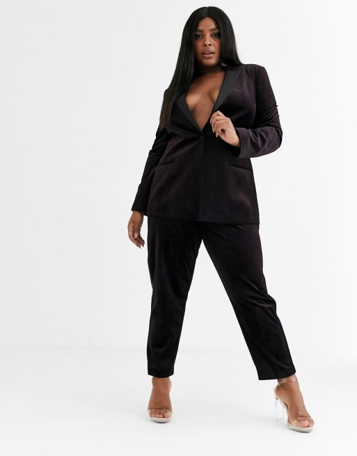 ASOS DESIGN Curve - Smoking in velluto color vino