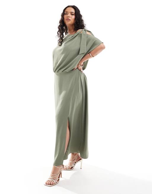 ASOS DESIGN Curve - Vestito midi con blusa allacciata sulle spalle kaki