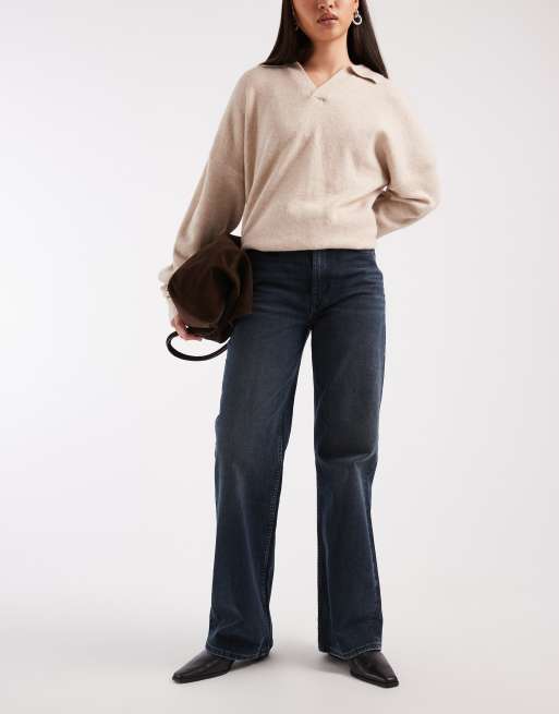 ASOS DESIGN - Dad jeans nero blu con fondo ampio