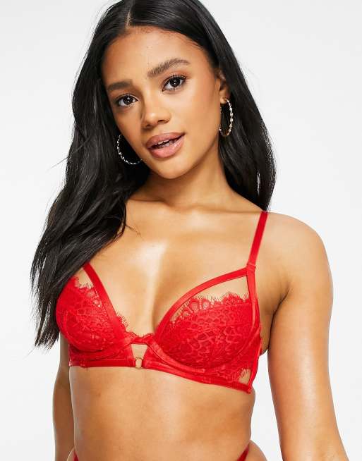 ASOS DESIGN - Daisy - Reggiseno in pizzo rosso con ferretto e fascette multiple