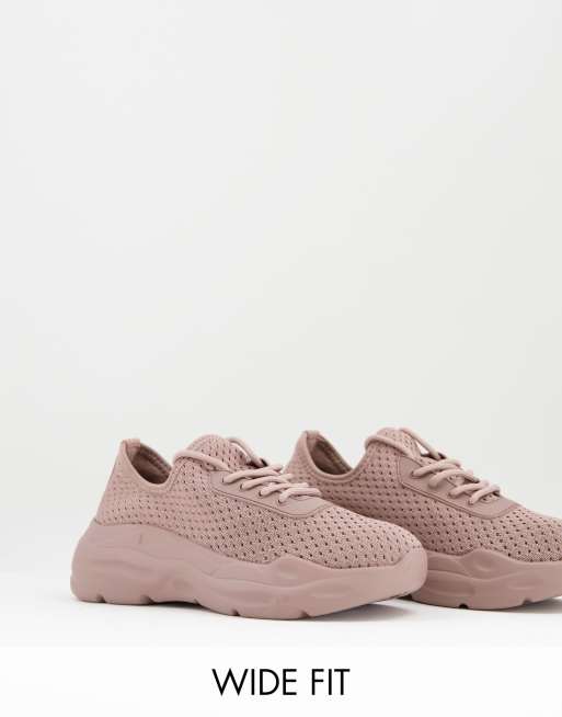 ASOS DESIGN - Denmark - Sneakers stringate in maglia spessa rosa a pianta larga
