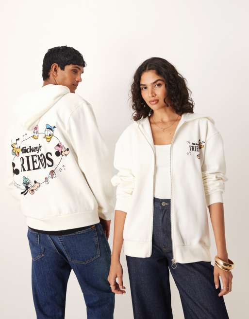 ASOS DESIGN - Disney - Felpa con cappuccio comoda unisex color crema con zip e stampa Mickey & Friends