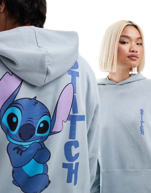 ASOS DESIGN - Disney - Felpa con cappuccio oversize unisex grigia con stampa di Stitch