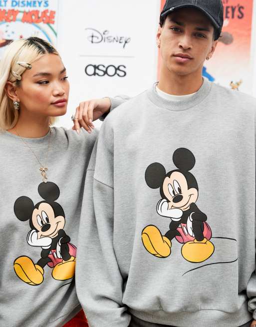 ASOS DESIGN - Disney - Felpa super oversize unisex grigio mélange con stampa di Topolino