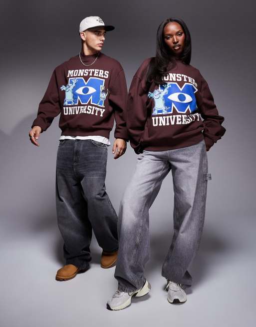 ASOS DESIGN - Disney Pixar - Felpa unisex oversize marrone con stampa e ricami Monster Inc.