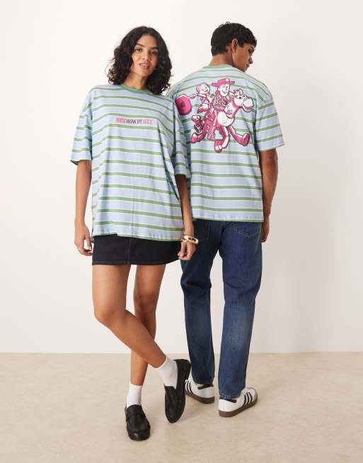ASOS DESIGN - Disney Pixar - T-shirt unisex oversize verde con motivo gessato e stampa "Jessie Toy Story"