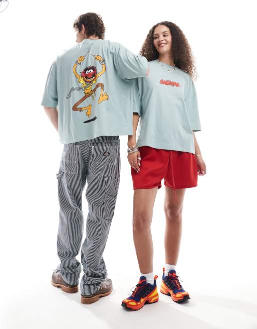 ASOS DESIGN - Disney - T-shirt oversize unisex squadrata grigia con stampa di Animal dei Muppets