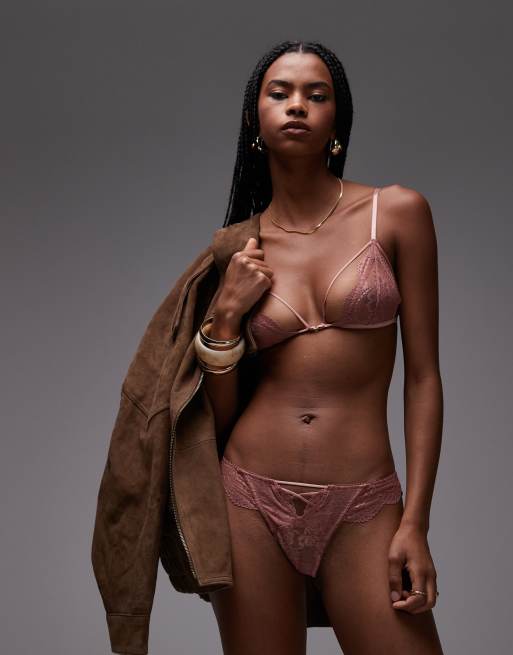 ASOS DESIGN - Drew - Completo intimo in pizzo con fascette sottili color visone
