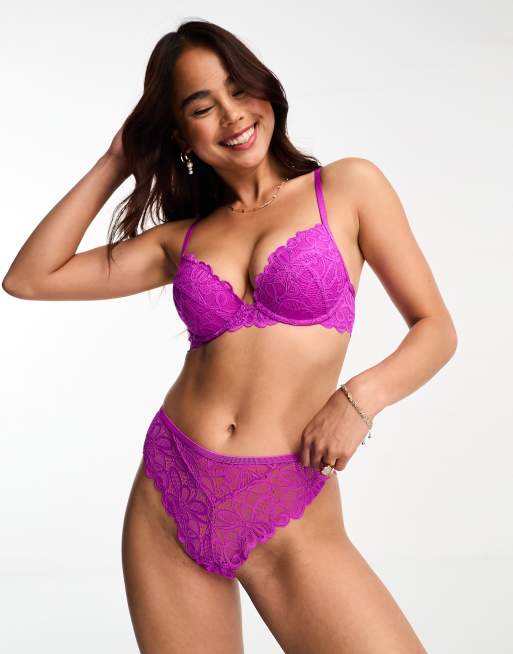 ASOS DESIGN - Dylan - Reggiseno push up viola in pizzo