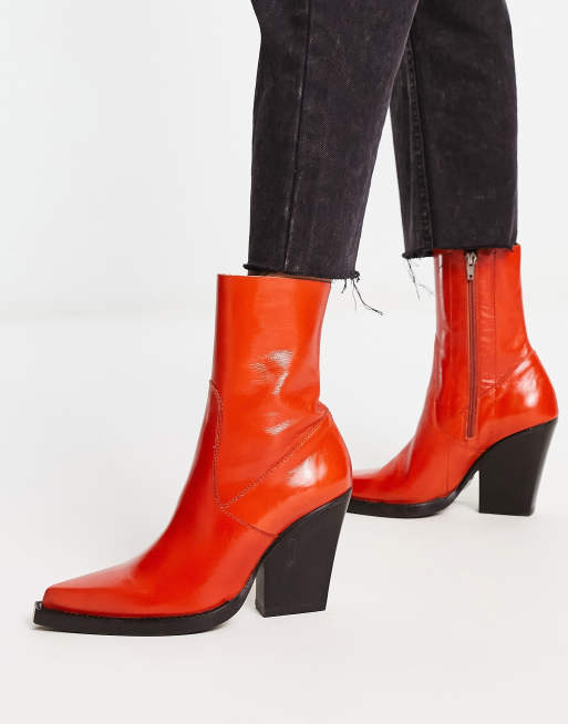ASOS DESIGN - Eclipse - Stivaletti premium a calza western in pelle arancioni