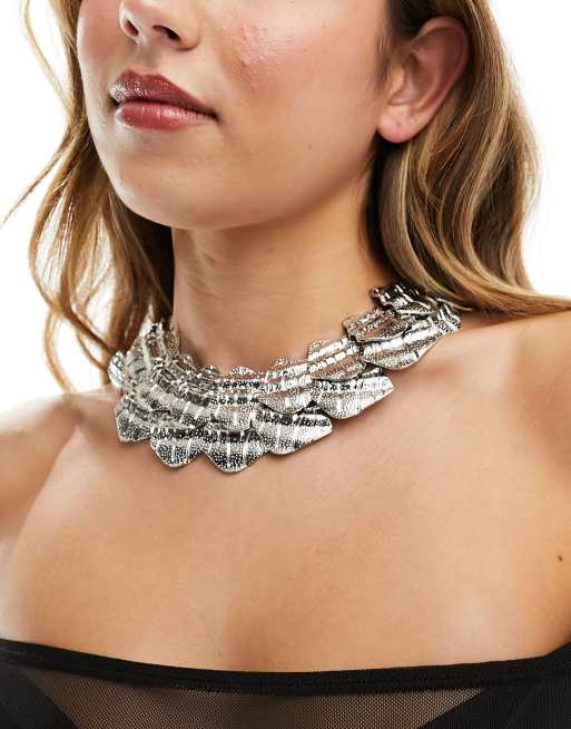 ASOS DESIGN - Edizione limitata - Collarino argentato con dischi martellati