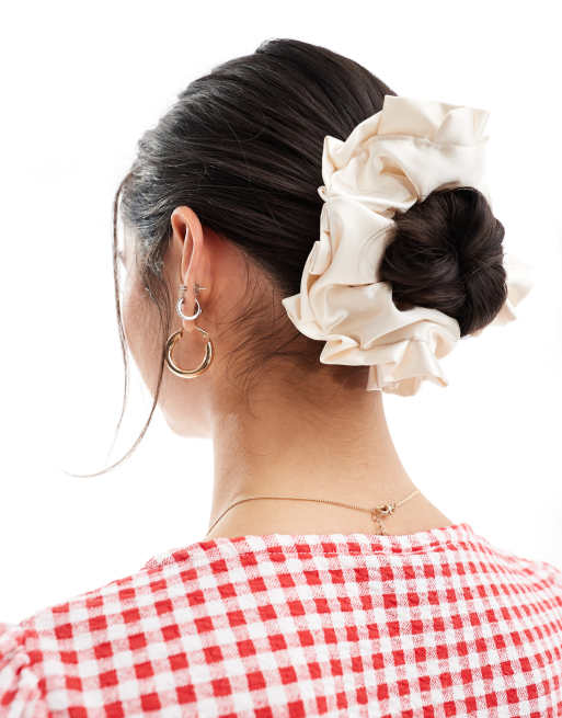 ASOS DESIGN - Elastico per capelli in raso crema con bordi con volant