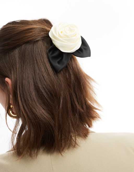 ASOS DESIGN - Elastico per capelli nero con fiore applicato