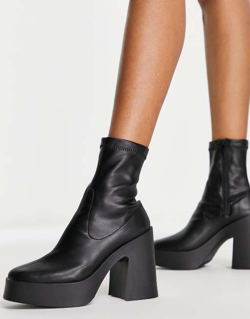 ASOS DESIGN - Elsie - Stivaletti a calza neri con tacco alto in ecopelle PU