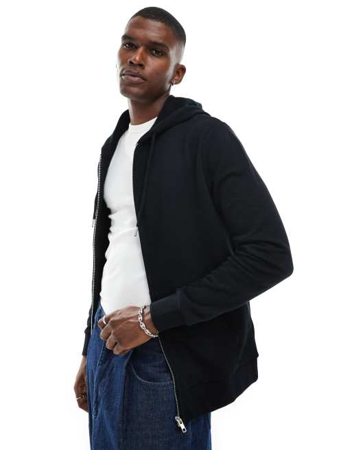 ASOS DESIGN - Essential - Felpa nera con cappuccio e chiusura con zip