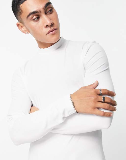 ASOS DESIGN - Essential - Maglietta attillata e accollata a maniche lunghe bianca