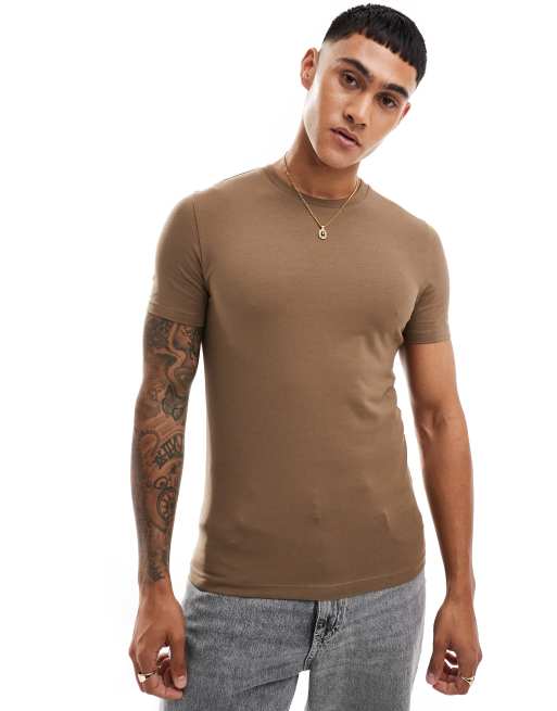 ASOS DESIGN - Essential - T-shirt attillata marrone