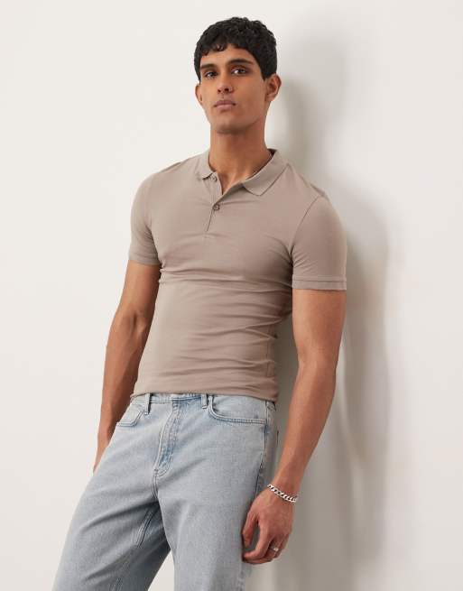 ASOS DESIGN - Essentials - Polo attillata color pietra