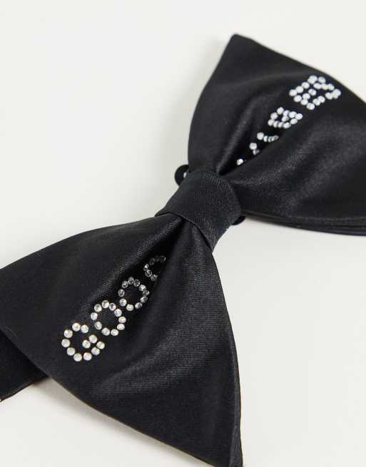 ASOS DESIGN - Farfallino oversize nero con scritta di strass