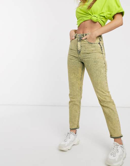 ASOS DESIGN - Farleigh - Mom jeans vita alta slim limone acido