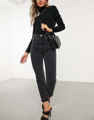 ASOS DESIGN - Farleigh - Mom jeans vita alta slim nero slavato