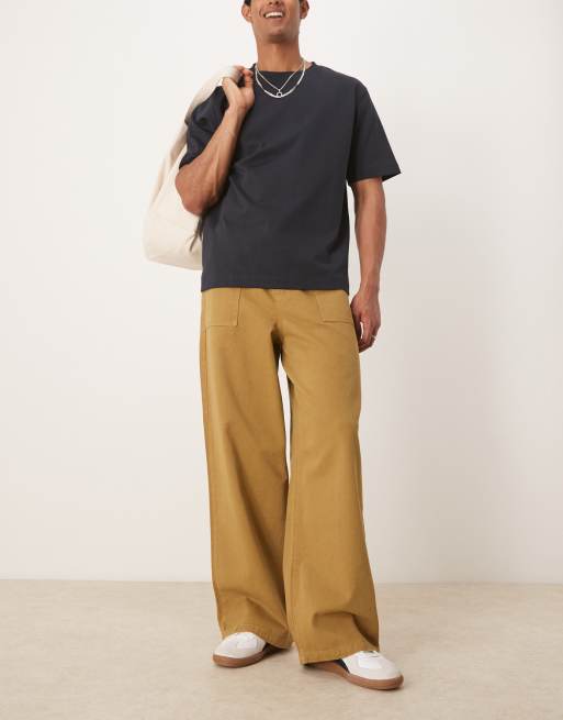 ASOS DESIGN - Fatigue - Pantaloni super ampi color cuoio con pinces
